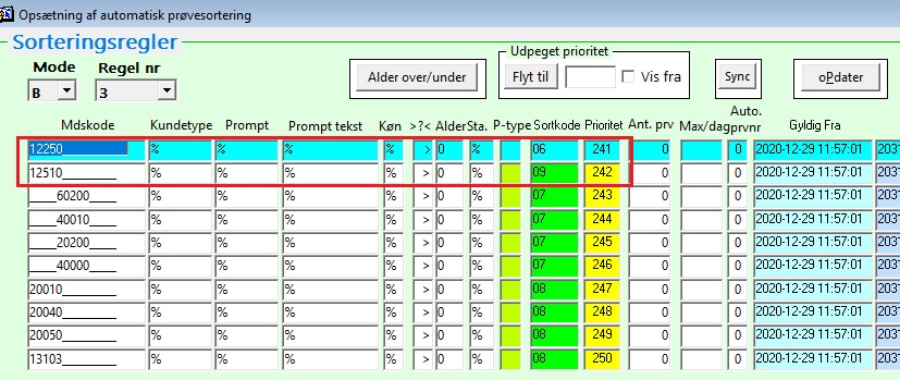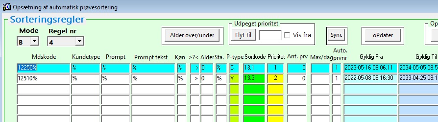 NB! Hvis ”Regler for automatisk prøvesortering” er åbnet på to forskellige MADS’er, vil den ene af MADS’erne låse tabellen. Sørg for kun at rette i sorteringsregler, når du er eneste bruger, der er inde i programmet/billedet, og kun når sorteringsrobotten ikke kører.